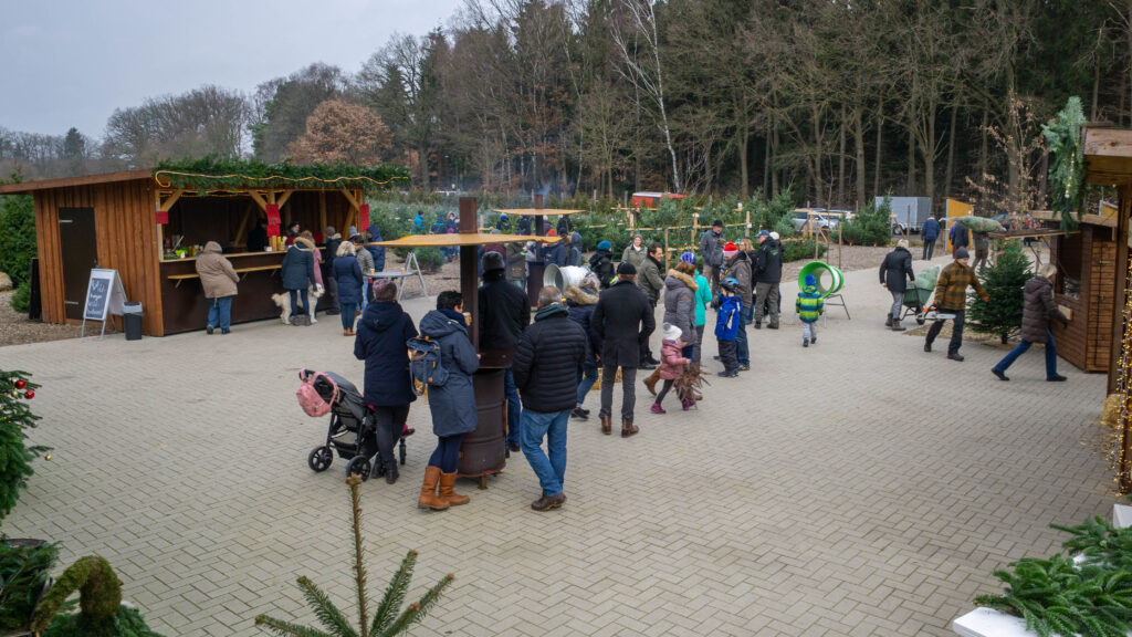 Die gewünschte Stückzahl an Weihnachtsbäumen bringen wir mit. Auch die Verköstigung kann vor Ort bei Ihnen stattfinden.