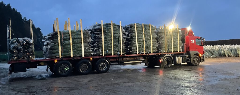 Sie können die Bäume selbst abholen, aber es ist auch möglich, dass die Anlieferung durch uns erfolgt.